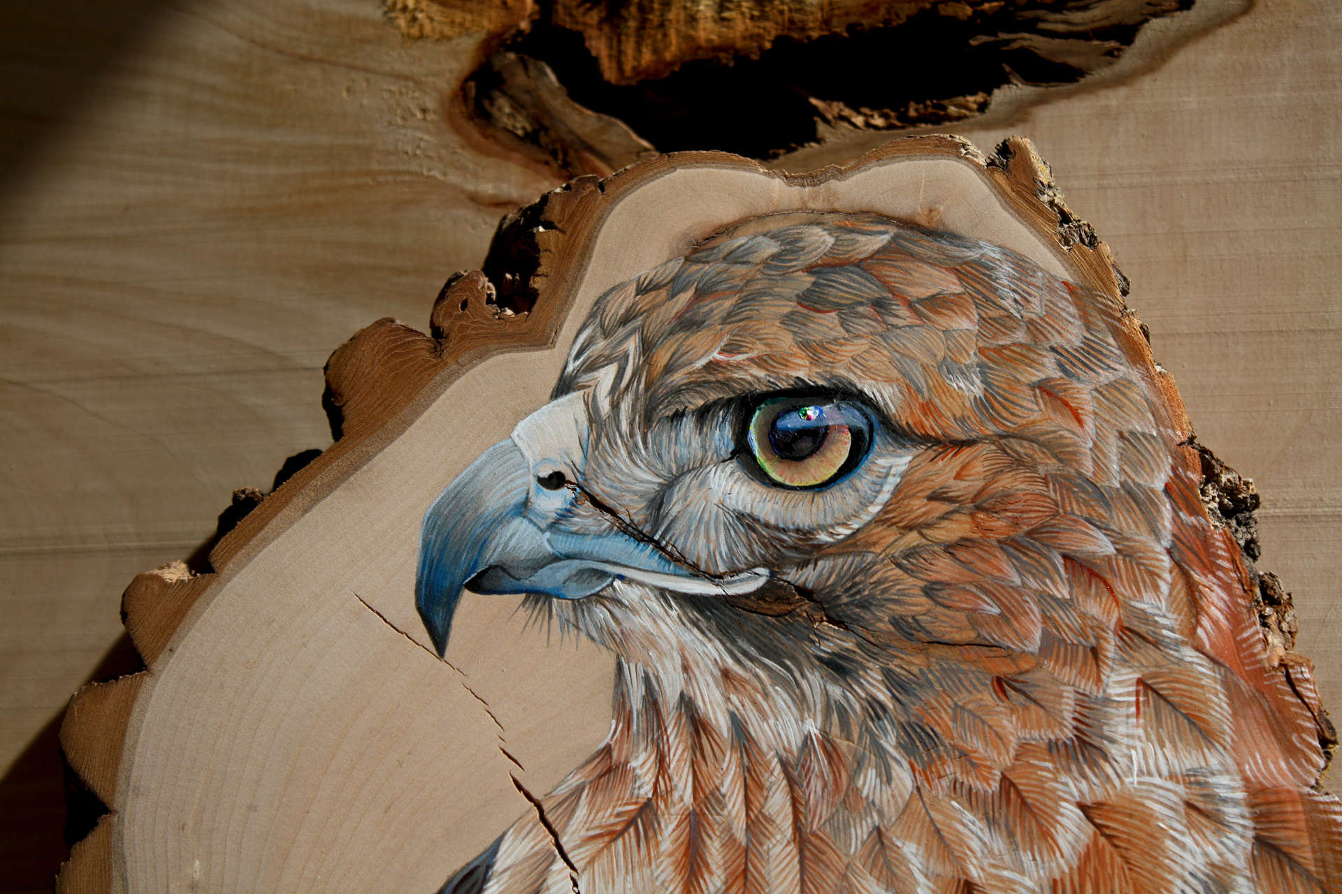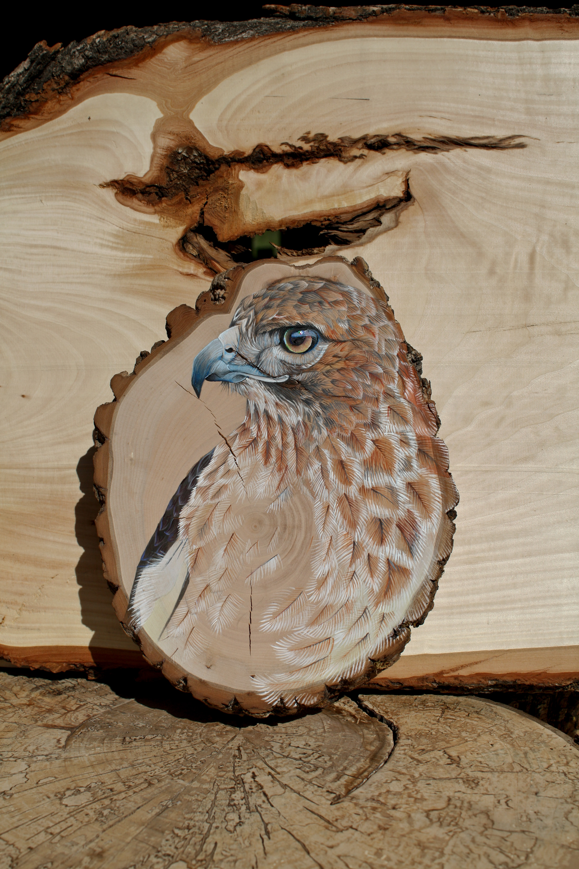 Animal Totem series of paintings created with acrylic paint on hand prepared locally harvested wood slices.