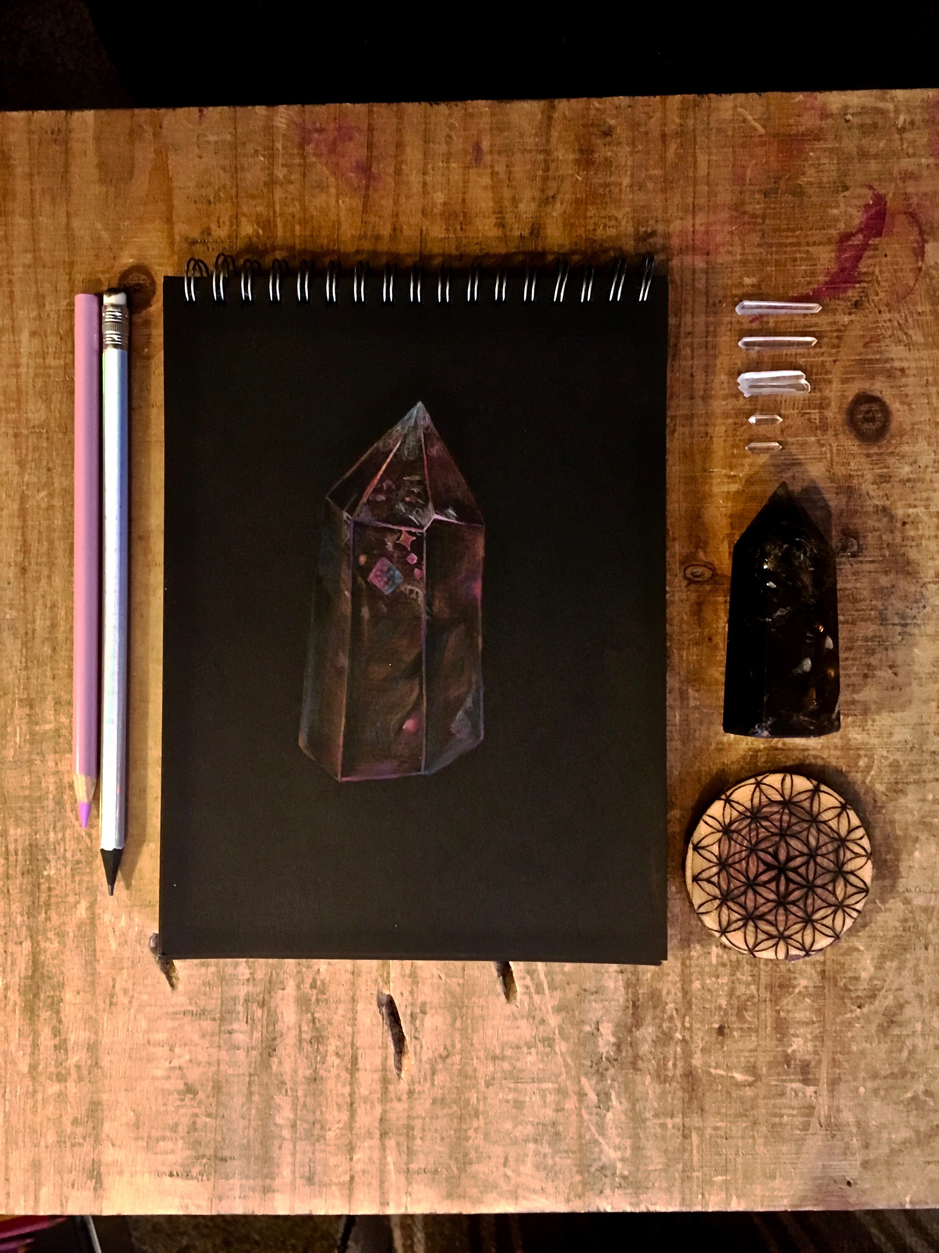 smokey quartz in colored pencil